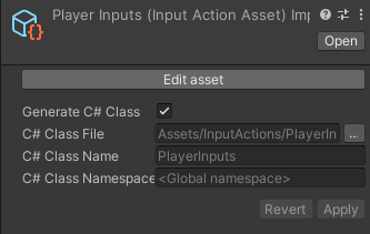 스크립트 작업을 시작하기 전에, 생성했던 Input Action Asset에 들어가 Generate C# Class를 눌러 Apply 해야합니다.